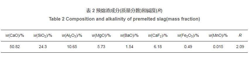 表2预熔渣成分(质量分数)和碱度(R)