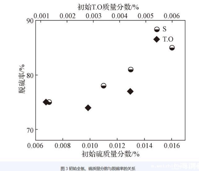 2.1钢中氧、硫含量对脱硫的影响