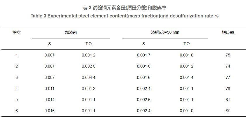 表3试验钢元素含量(质量分数)和脱硫率