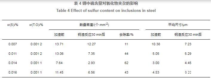 表4钢中硫含量对氧化物夹杂的影响