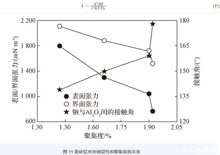 图11氧化铝夹杂润湿性和聚集度的关系