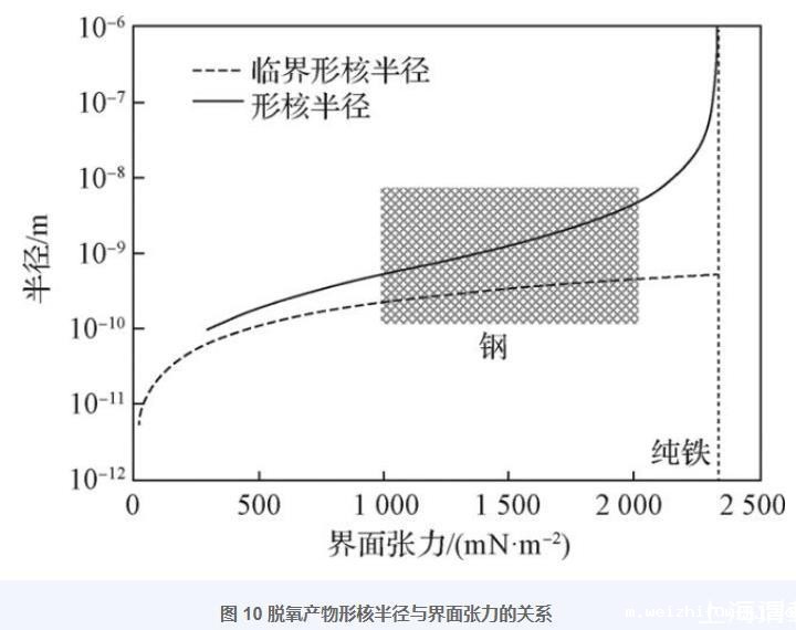 图10脱氧产物形核半径与界面张力的关系