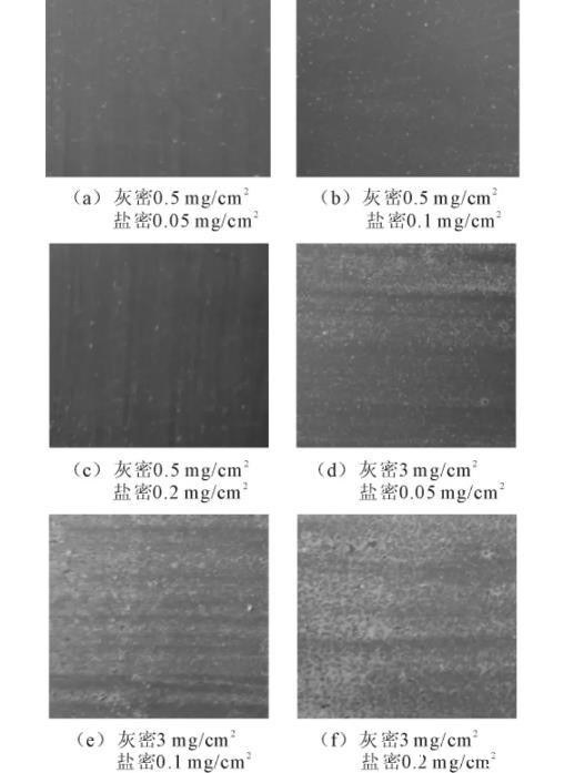 结合电力系统线路运行环境,对自然污秽分布和种类进行研究,得到两份混合成分盐溶液的离子成分配比,配置溶液的含盐质量与浓度为0.021 4 mol/L的50 mL的NaCl盐溶液相同。第一份模拟的是在经济发达地区交通繁忙路段附近的典型污秽成分,选用的盐为:NaNO3、KCl、NH4Cl、CaSO4,其相应的质量分数比为17.68:3.35:5.19:54.54;第二份模拟的是火电厂、煤矿和焦化厂等工业区附近典型污秽物成分,选用的盐为:NaCl、KCl、NH4Cl、CaSO4、MgSO4,相应的质量分数比为:74:10.6:2.98:66.34:2.1。