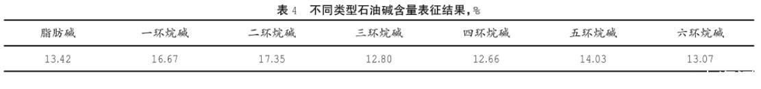 (2)萃出石油碱组分含量为4.46%,相对分子质量主要分布在300~700,碳数对应C21~C49,结构以环烷碱为主;