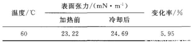 将助排剂AO-4放入烘箱,温度设置为60℃,放置2 h后,冷却至室温,测试其表面张力,结果见表2。
