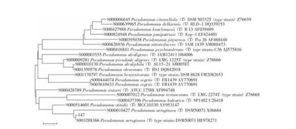 图1 147菌株16S rDNA基因序列系统发育树