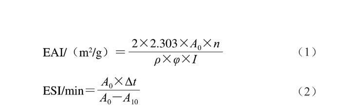式中:A0为均质0 min乳液制得混合溶液在500 nm处的吸光度;n为乳液稀释倍数;ρ为明胶质量浓度/(mg/mL);φ为乳液中玉米油的体积分数(0.2);I为比色皿厚度(0.01 m);A10为均质10 min乳液制得混合溶液在500 nm处的吸光度;Δt为时间间隔(10 min)。