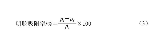 参考Tian Yan等的方法,并稍作改动。将1.3.2节新鲜制备的乳液在20 ℃下以12 000 r/min离心30 min后,将油滴和吸附在油滴上的蛋白质从水相中分离出来。随后,用注射器抽取离心管底部的溶液,并用0.22 μm滤膜过滤。明胶吸附率按式(3)计算: