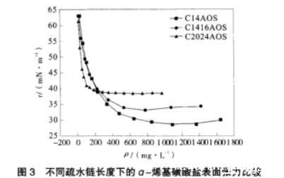 图3不同疏水链长度下的ɑ-烯基磺酸盐表面张力比较