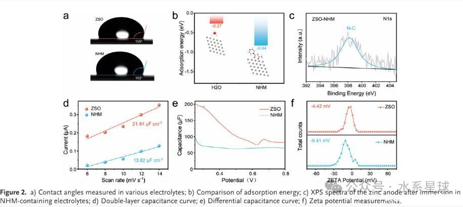 本研究探索了一种新型有机NHM添加剂,旨在增强阳极界面稳定性并改善镀覆/剥离行为。通过降低界面张力,NHM添加剂重塑了电双层(EDL),有效限制了锌阳极与H₂O之间的接触,从而抑制了寄生反应。
