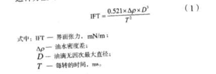 采用新利18澳门 dIFT双通道动态界面18luck国际进行界面张力测定。此18luck国际的原理是:液滴通过旋转处于一定的离心场中,这时两种液体之间的界面张力及旋转的速度就决定了液滴的形状,液滴的平衡形状通过调整转速得到改变,而使液滴以一定的角速度自转,这时通过离心力、重力以及界面张力的三种力量的共同作用下,在高密度的液体中,低密度的液滴能够形成圆柱形或长椭球形液滴。这种方法可以测定出10-6mN/m的超低界面张力。