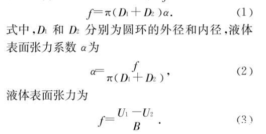 式中,D1和D2分别为圆环的外径和内径,液体表面张力系数α为