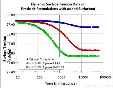 我们分别用Kibron动态表面18luck国际,DSA100液滴形状分析仪,从动态表面张力,接触角和滚动角的角度,来全面衡量和评价0.5wt%的Agrosurf SSP、0.5wt%的Agrosurf NEC38对农药的喷洒效果。