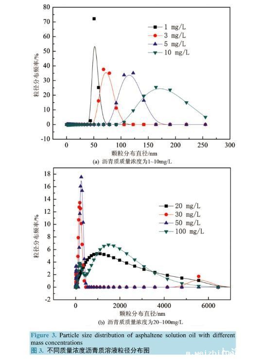3.3.不同质量浓度沥青质模拟油体系粒径分布