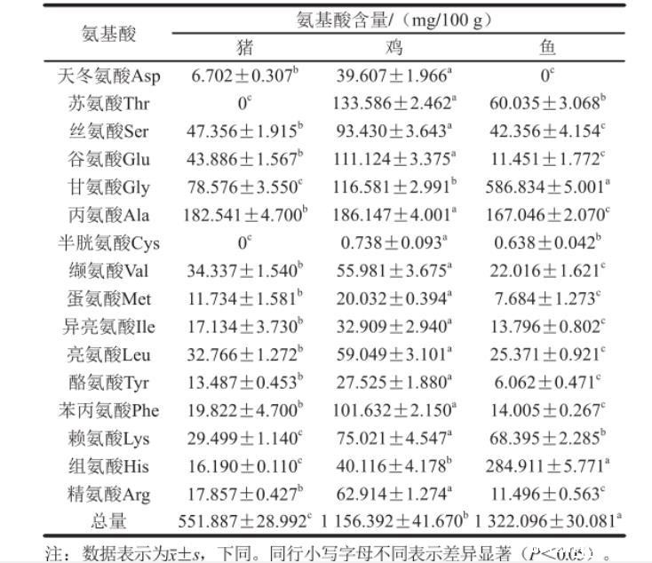 表1不同种类肉中肌浆蛋白的氨基酸含量