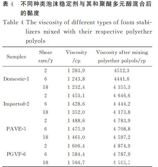 表4不同泡沫稳定剂与对应聚醚多元醇混合后的黏度