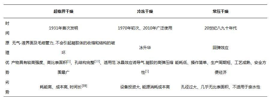 综上所述,不同的干燥方法侧重点不同,各具优缺点。表1概括了三种常用干燥方法的发明时间、原理及优劣势。