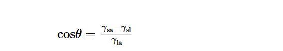 在由颗粒稳定的泡沫中,气泡表面存在不可逆吸附的颗粒层,可以起到抵抗聚结和粗化的物理屏障作用。颗粒必须首先吸附到表面上才能实现稳定泡沫的功能。通常认为,颗粒在空气/液体表面的吸附与颗粒的润湿性相关,该润湿性通过颗粒与空气/液体界面的接触角来量化,可由杨氏方程计算得到: