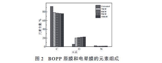 2.2 电晕功率对BOPP薄膜表面元素组成的影响