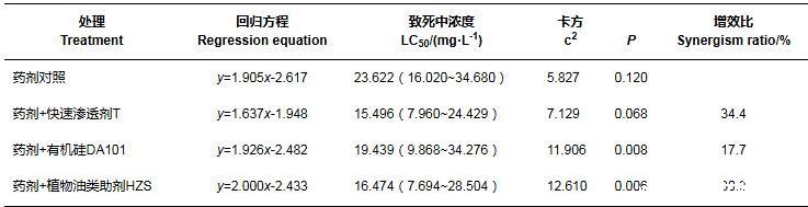 2.3喷雾助剂对2种药剂防治石斛菲盾蚧室内毒力的增效作用