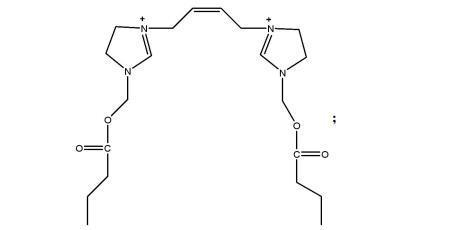 1,4-二((丁酰氧基)-3-甲基咪唑啉)丁烯的制备方法,包括:N-羟甲基咪唑啉和酰氯在四氢呋喃中反应,旋蒸得到产物,产物经洗涤后,加入正己烷和1,4-二溴丁烯搅拌反应,过滤后得到1,4-二((丁酰氧基)-3-甲基咪唑啉)丁烯。