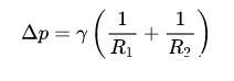 其中,γ是表面张力,R1和R2分别是两个方向上的曲率半径。