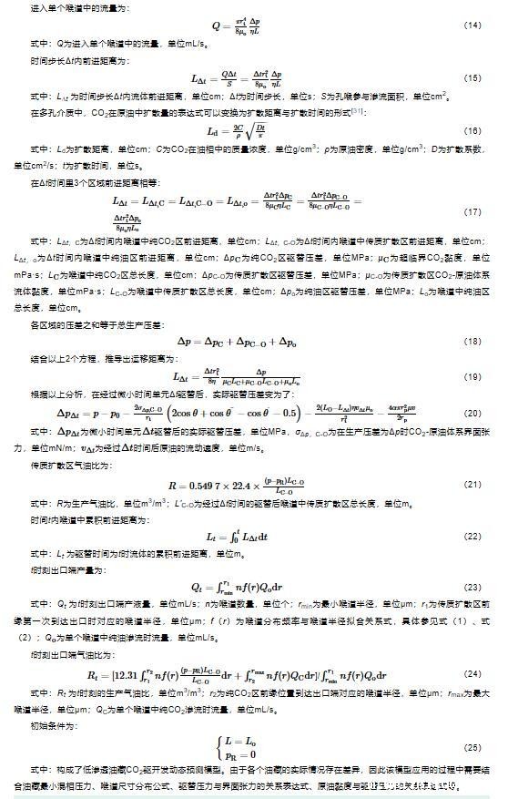 由于各个油藏的实际情况存在差异,因此该模型应用的过程中需要结合油藏最小混相压力、喉道尺寸分布公式、驱替压力与界面张力的关系表达式、原油黏度与驱替压力的关系表达式等。