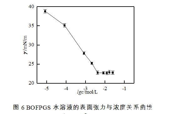 图6 BOFPGS水溶液的表面张力与浓度关系曲线