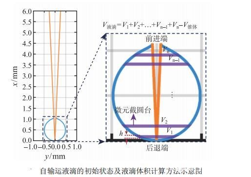 研究结果显示,液滴的自输运驱动力Fd可表示为界面自由能E对输运高度h的负导数:Fd=-dE/dh。随着液滴沿锥体向上移动,其界面自由能和驱动力均单调递减,最终当驱动力等于重力时,液滴停止运动。