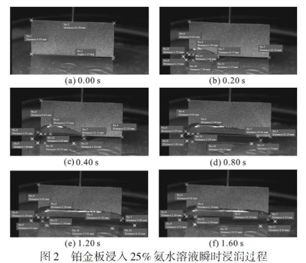 图2 铂金板浸入25%氨水溶液瞬时浸润过程