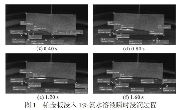 图1 铂金板浸入1%氨水溶液瞬时浸润过程