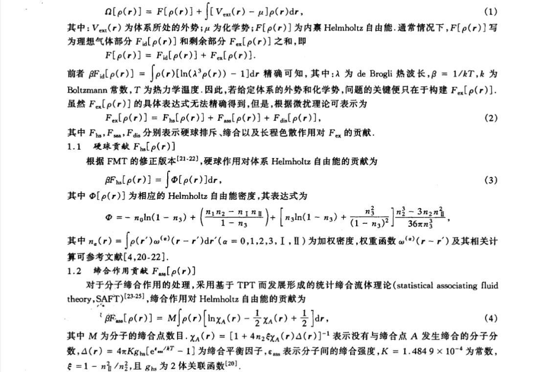 1.2 缔合作用贡献 Fas[ρ(r)]