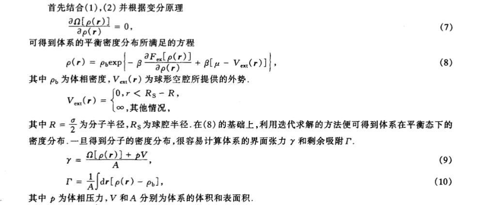 其中,nₐ(r)=∫ρ(r')ω⁽ᵃ⁾(r'−r)dr'(a=0,1,2,3,I,II)为加权密度,权重函数 ω⁽ᵃ⁾(r−r')及其相关计算可参考文献。