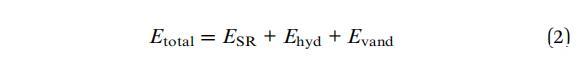 两种平衡力在组装的形成中起着重要作用:由两种粒子之间的界面力控制的疏水相互作用,以及纳米粘土团簇和系统疏水环境之间的空间斥力。因此,复杂核-壳(粘土小体)组装的总能量由以下三个贡献的总和给出:相邻纳米粘土团簇之间的空间斥力(ESR)、9疏水力(Ehyd)、9和范德华力(Evand):34