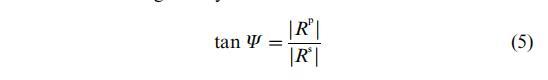 椭偏仪是一种研究表面和薄膜的技术,其基础是利用偏振光束从界面或薄膜反射或透射时发生的偏振变换。33在椭偏仪中,测量两个量J和D, 式中,J是角,其切线是全反射系数大小的比率,由下式给出:
