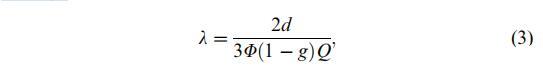 反过来,光的传输平均自由程与穿过的气泡的平均直径(d)和体积分数(F)有关