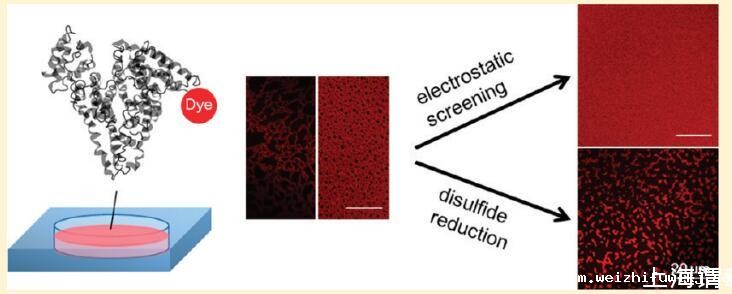 从另一个角度来看,AWI是一种独特的工具,用于将蛋白质作为小的构建单元引导到更大的自组装结构中。蛋白质是天然存在的生物聚合物,具有非对称分布的掩埋和溶剂暴露的活性位点、静电电荷和疏水/亲水残基。这些特征,再加上几何约束,决定了折叠蛋白质及其较大组装体的结构。组装复杂的生物或合成系统的一种策略是促进一个或两个维度的相互作用。液体界面在这方面特别有用,因为其中存在各向异性力和二维空间限制。7-9除了液体界面的特殊特性外,通常控制自组装的因素是构建块的化学和结构互补性。10对于蛋白质等大分子,其活性部位、几何结构以及静电和疏水相互作用受到周围溶剂分子和其他溶质的极大影响。11,12因此,溶液条件为在AWI处控制蛋白质组装提供了方便的手柄。
