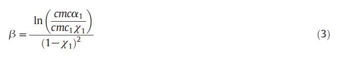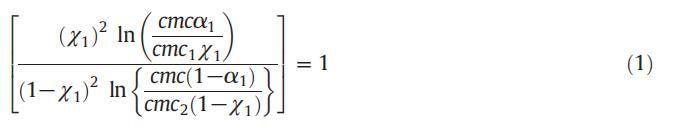 应用正规溶液理论,可以计算混合胶束中表面活性剂分子之间的相互作用参数(β)值,从而提供表面活性剂分子之间相互作用强度的信息。借助正规溶液理论(RST),胶束摩尔分数也可以使用鲁宾方程计算: