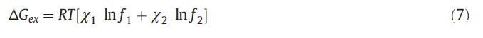 活度系数以及胶束摩尔分数也可用于使用式(7)[56]计算混合的过量自由能(ΔGex):
