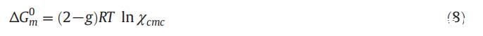 胶束化的标准吉布斯自由能可使用式(8)计算: