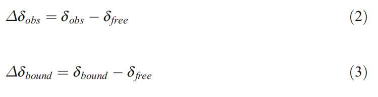 两者之间的比率∆δobs与∆因此,δ束缚态相当于束缚客体分子的摩尔分数: