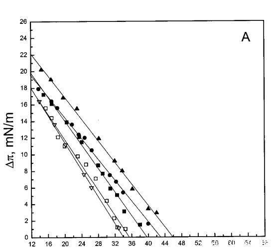 对于测试的所有单层组成,吲哚青霉素的πc值超过了马盖宁2的测量值(图1 c),表明该肽在酰基链之间有效插入和插层。吲哚西丁在~38 mN/m的交叉点值得关注。在后一个表面压力之下,表面压力的增量∆?在PG存在的情况下,吲哚西丁引起的反应增强,而在较高的初始脂质堆积密度下观察到相反的反应。有趣的是,不管脂质成分(即PG的存在)如何,交叉点几乎保持不变,因此表明它可以完全由表面压力决定,而不管静电相互作用如何。一种可能的机制是,在π0>38 mN/m时,吲哚西丁以压力依赖的方式改变其在单层中的取向,可能是从其长轴相对于层平面的平行到垂直取向(图9,B和C),从而减少面积/肽并减少∆π.此外,一些静电结合吲哚肽的PG分子也可能与单层中的磷脂方向不同。换句话说,吲哚西丁与其相关的PG将形成一种超分子复合物,其取向将取决于压力。这在图9中示意性地示出。重要的是,所提出的肽连接磷脂的重新定向将与最近提出的模型兼容,在该模型中,穿过双层的孔表面的一部分将由脂质头基构成(Ludtke et al.,1996)。