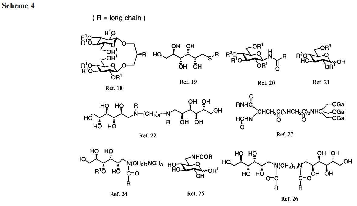 溶解度是一个常见且经常被忽略的参数,难以测量,甚至更难理解。由于强大的晶体力,固体可能不溶于水,即使有X射线数据,晶体力的性质也常常模糊不清。在我们的例子中,含有酰胺的分子内和分子间氢键可能有助于固态的热力学稳定性。不溶性也可能源于溶液中不利的溶剂化和聚集效应。A系列海藻糖双子可能会抵抗溶解,因为它们无法以与相应单链段可能的方式形成亲水胶束聚集体。当考虑到双子座的两条链位于双糖的远端,分子内链/链相互作用部分受损时,这种推测就变得可信了。链关联的主题将在后面讨论。