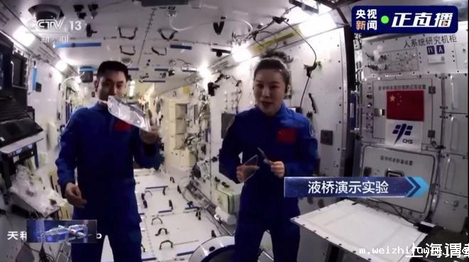 天宫课堂航天员液桥演示实验展示表面张力的神奇作用