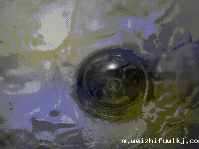 这个结论对于高粘度液体同样成立吗?在这类粘性液体中,气泡破裂的速度要慢得多,破裂过程可能需要1秒,并且破裂的方式也与低粘度液体不同:它们会自行向内坍塌,从而造成结构不稳定,直观表现就是气泡周围出现径向的褶皱。