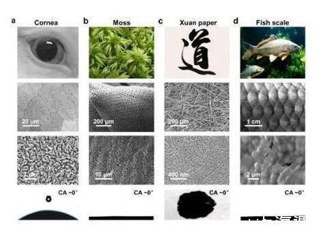 图2.自然界中的超铺展表面