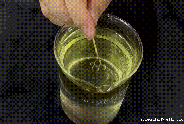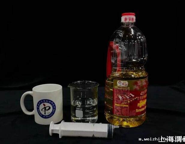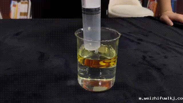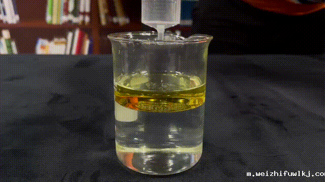 首先,我们沿杯壁向盛有水的烧杯中加入食用油,使水油有一个干净的界面