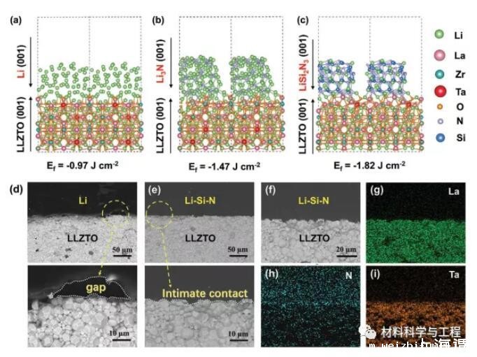 2)降低了Li|石榴石的界面形成能,使其具有良好的化学接触。用1wt%Si3N4降低表面张力起主导作用。