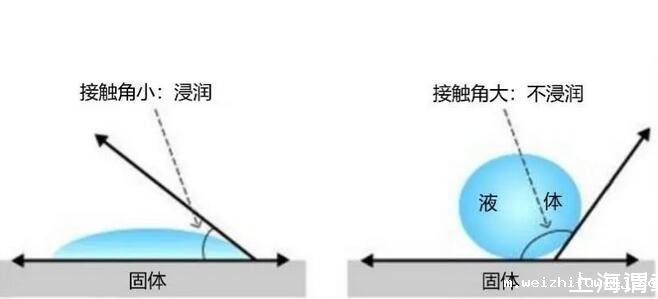 其实,这种现象在物理学上叫浸润与不浸润,由接触角的大小来区分。