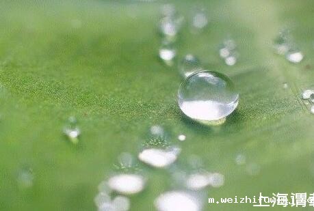 其他植物叶片,尤其是枯黄叶片上面的水滴则通常一滩滩地附着在叶子表面,大体上呈半椭球状。